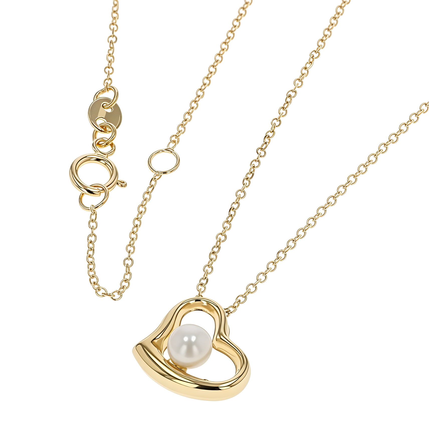 Diese zarte Halskette aus 9 Karat (375) Gelbgold verfügt über einen herzförmigen Anhänger mit einer natürlichen Süßwasserperle , einem Symbol für Eleganz und Zärtlichkeit.