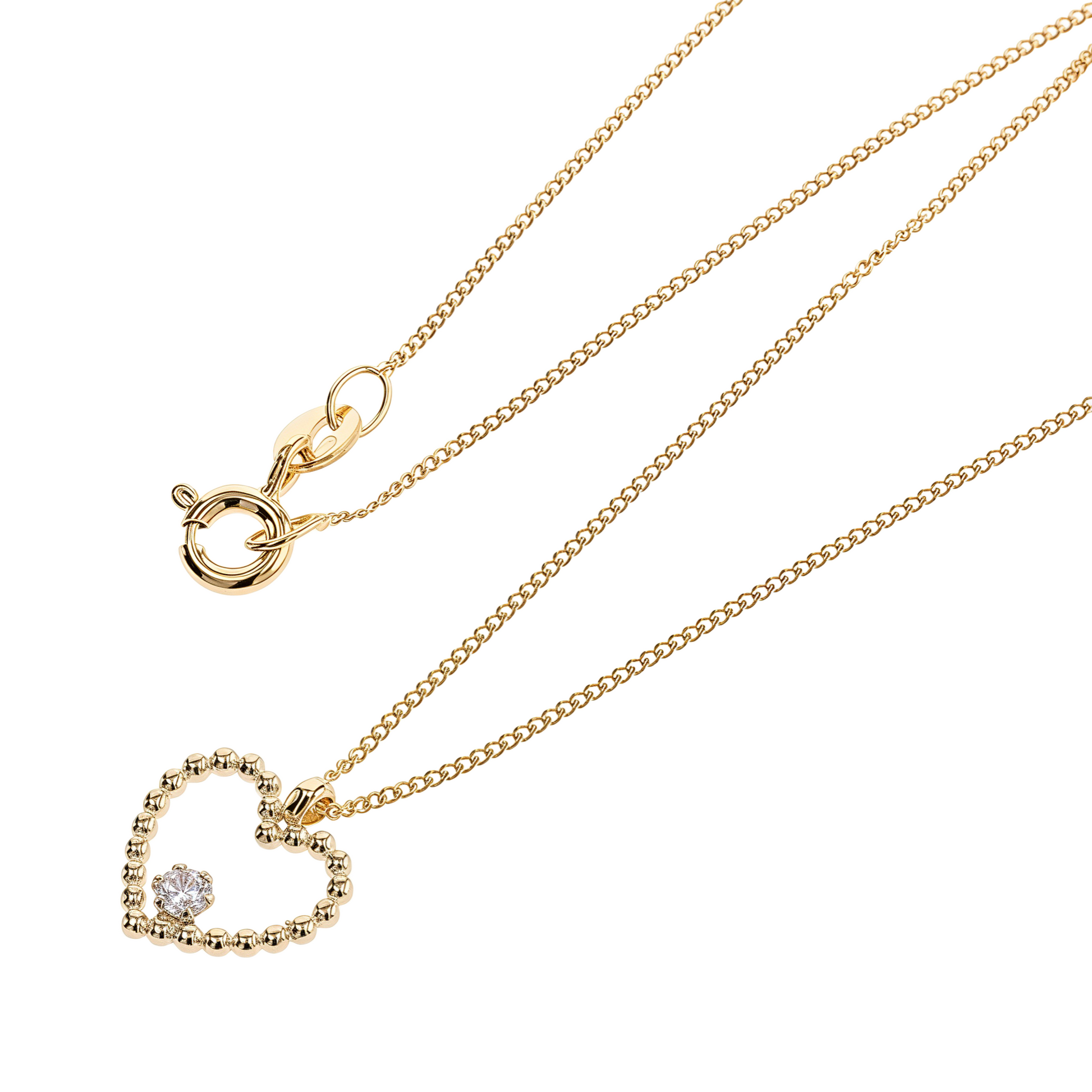 Diese edle Halskette aus 9 Karat (375) Gelbgold verfügt über einen zart perlenbesetzten herzförmigen Anhänger, der in der Mitte mit einem funkelnden Zirkonia verziert ist.