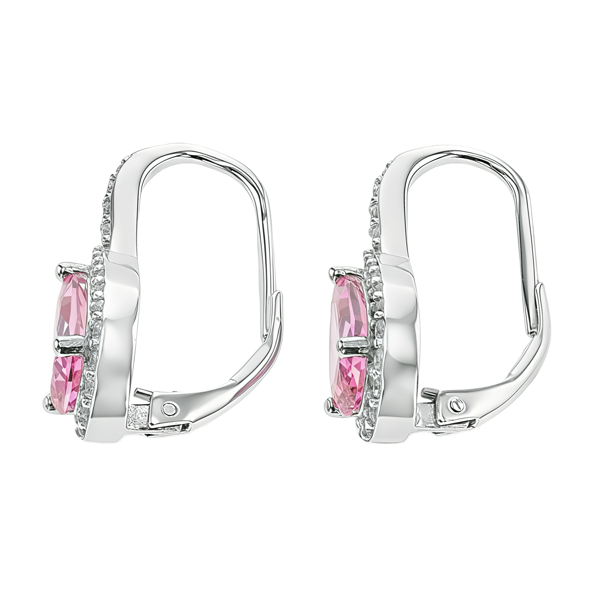 These 925 silver earrings enhance your style with their pink teardrop-shaped center stone, highlighted by a sparkling halo of white zirconia. A feminine and luminous touch for every occasion.