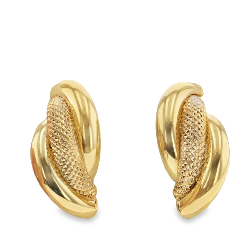 These 9-carat (375) yellow gold earrings feature a refined design that combines smooth surfaces with textured details. Their delicately twisted shape gives them a sophisticated and timeless style, perfect for any occasion.