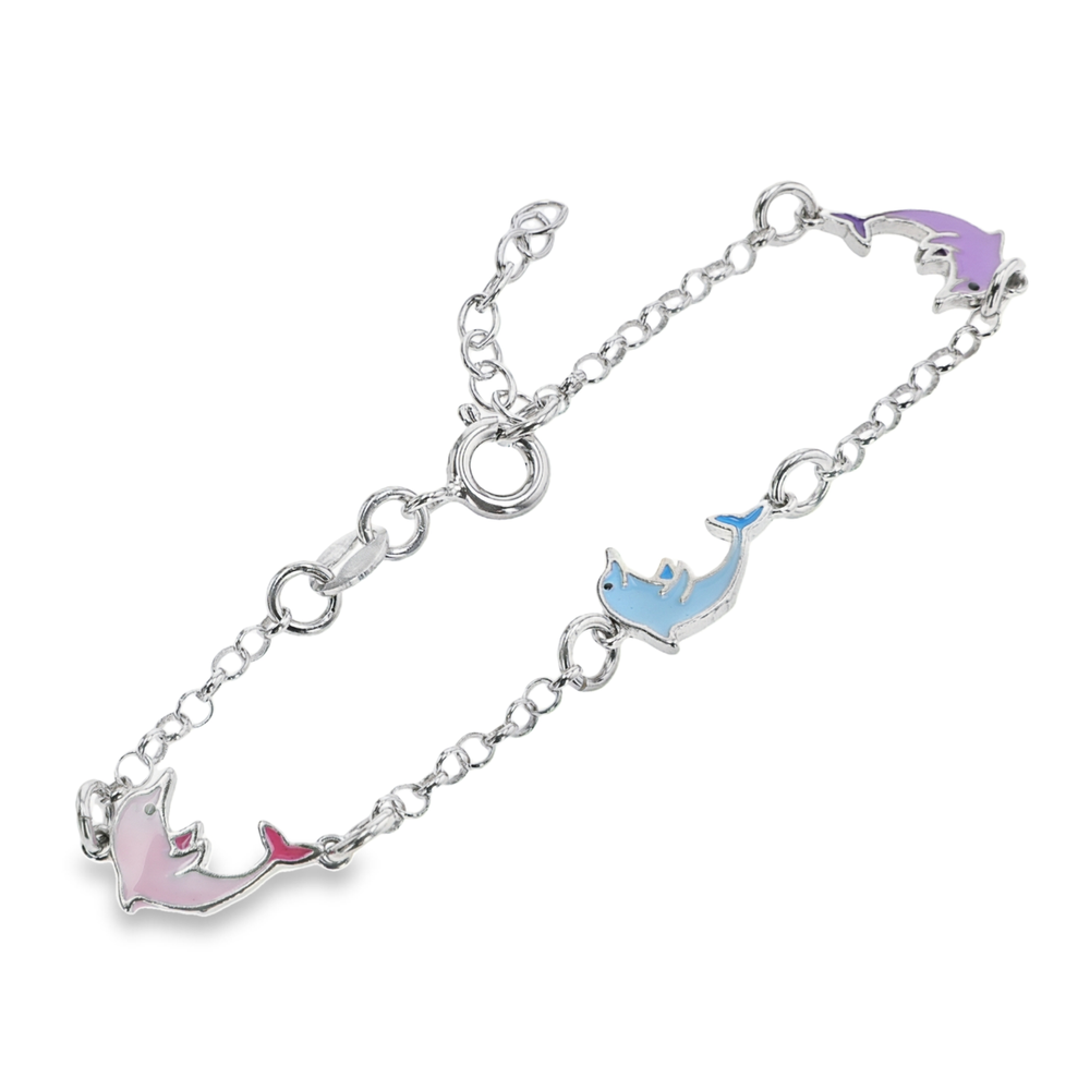 925 silver children's bracelet - Colorful dolphins 14 cm