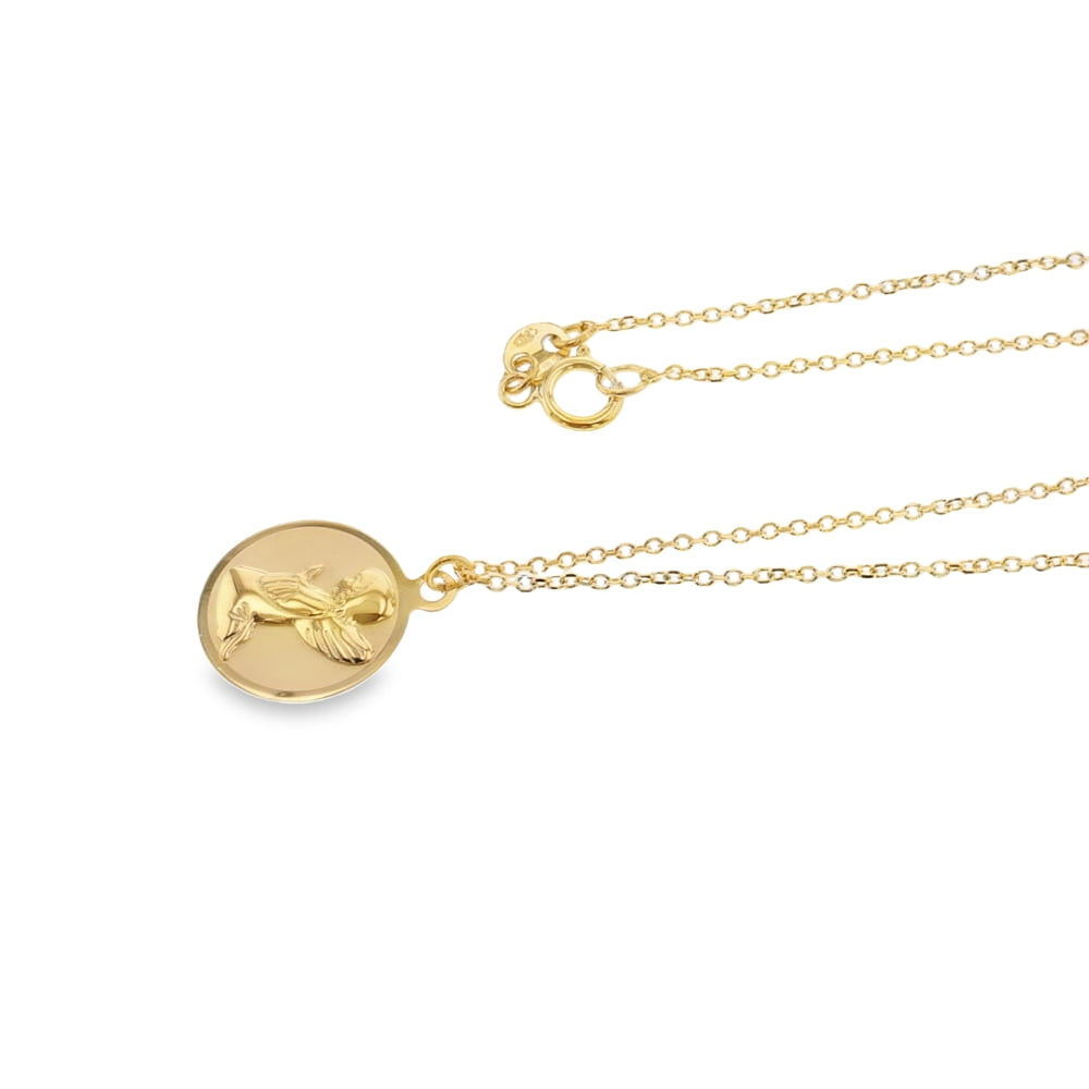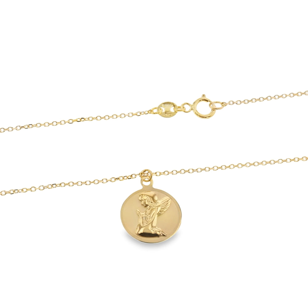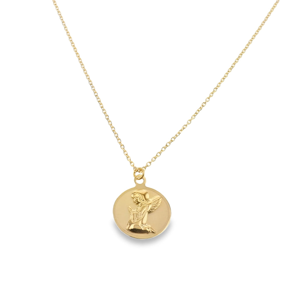 A refined and timeless piece of jewelry: this delicate 18-carat gold chain is adorned with a round medallion depicting an angel, a symbol of protection and tenderness. An ideal gift for a baptism, birth, or birthday.