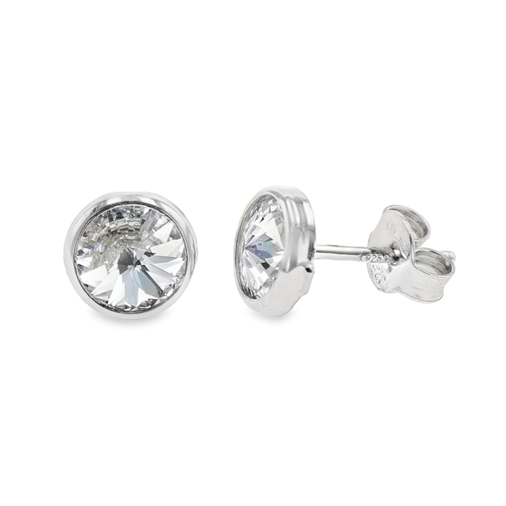 Ces clous d’oreilles en argent 925 mettent en valeur un cristal synthétique blanc de 6,5 mm, parfaitement taillé et serti dans une monture lisse et brillante. Leur design épuré en fait un essentiel chic pour tous les jours.