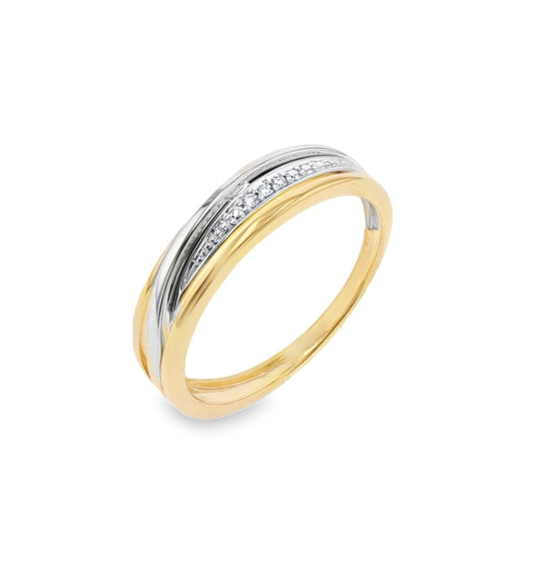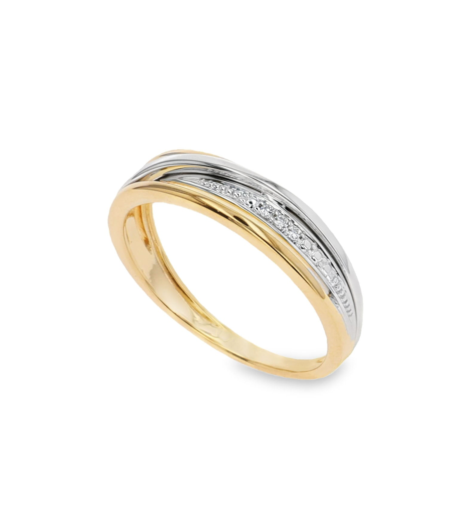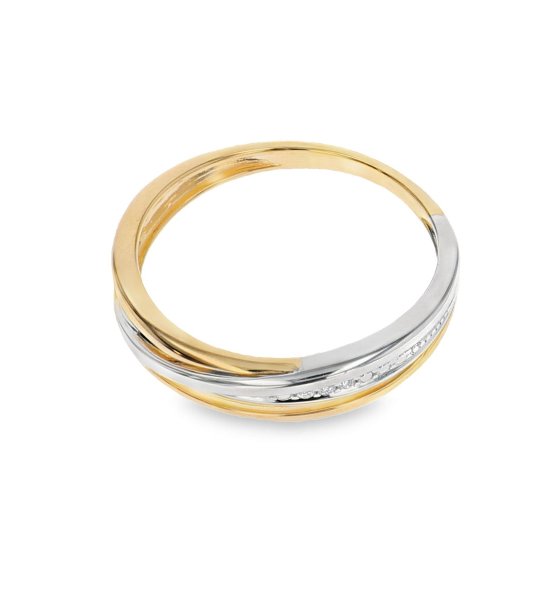 Ce modèle raffiné allie l’élégance de l’or jaune à la modernité de l’or blanc, le tout sublimé par trois diamants brillants soigneusement sertis. Un bijou harmonieux qui symbolise à la fois force et délicatesse – idéal pour toutes les occasions.