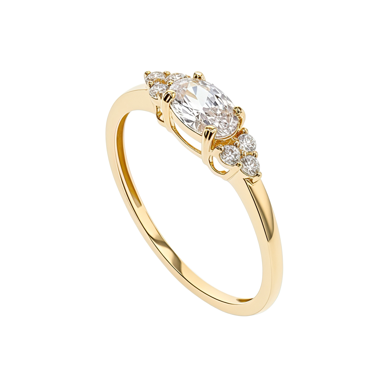 Élégante et étincelante, cette bague en or jaune 18 carats est ornée d’un zirconia central taillé en forme ovale, sublimé par de délicates pierres latérales. Son éclat raffiné imite la beauté du diamant, offrant une touche de luxe intemporel à un prix accessible. Parfaite pour toutes les occasions, du quotidien aux moments les plus précieux.