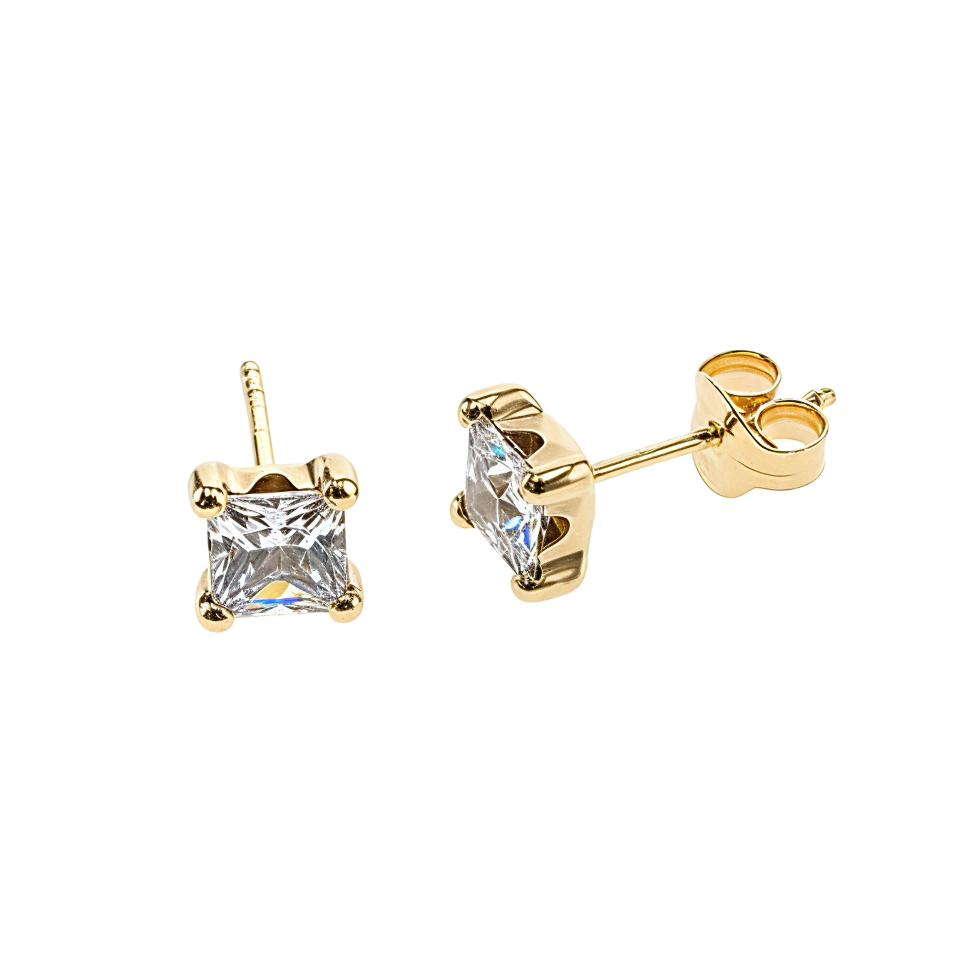 Ces boucles d’oreilles en or jaune 18 carats (750) mettent en valeur deux zirconias taille princesse de 4x4 mm, sertis avec élégance pour refléter la lumière à chaque mouvement.