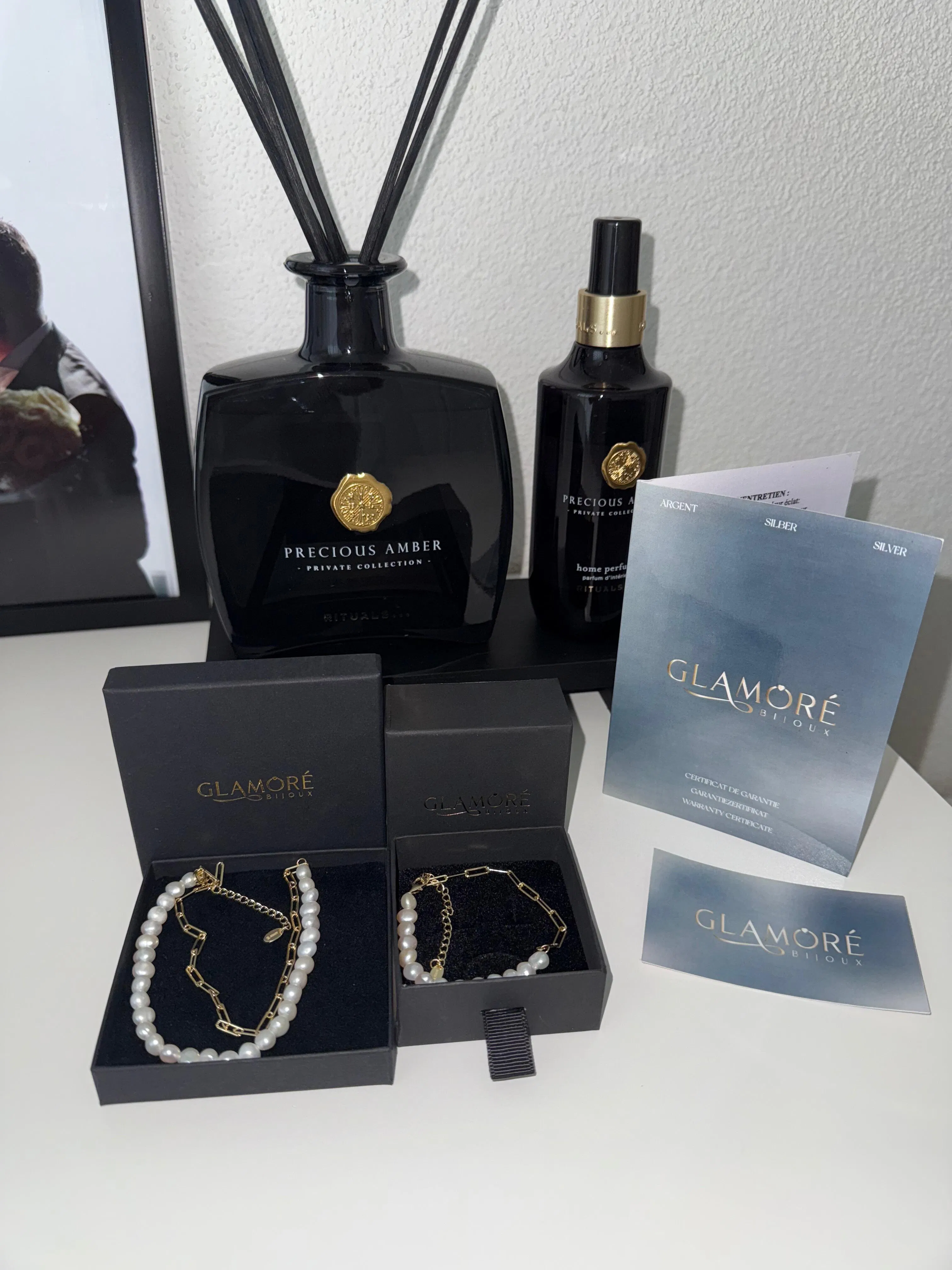 Un mariage parfait entre élégance classique et tendance moderne : cette chaîne en argent 925 plaqué or allie des maillons rectangulaires à des perles d’eau douce naturelles, pour un look bohème chic irrésistible.